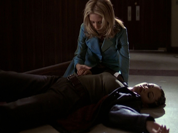 Usually, delaying rather than fighting to the death would be a dangerous game that would present a risk to Buffy herself. The tragic part is that wasn’t the case here. Buffy wasn’t in danger of dying in this fight at all. A delay was exactly what Angel wanted. She unintentionally played right into his hand. If she had gone in with the intention of killing him, then, as Angel was fighting to delay her, he would have been at the disadvantage. She might have been able to stake him quickly and get back to the school in time to stop Drusilla. But she doesn’t. Her choice allows their attack to go ahead as planned. Kendra dies because Buffy delayed.